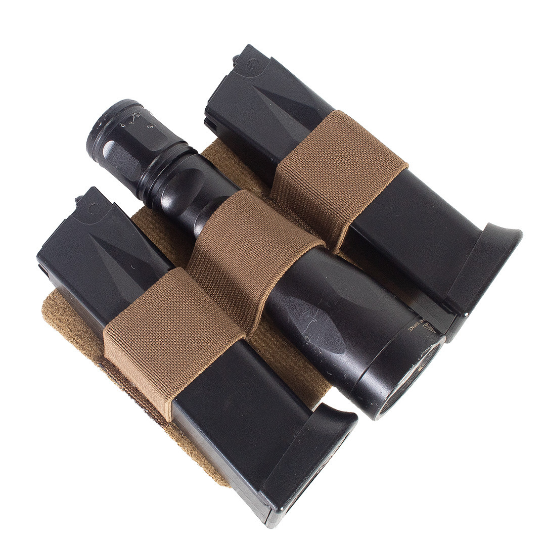 - Equipado com elásticos resistentes, é ideal para transportar carregadores, lanternas, canivetes e outros acessórios.