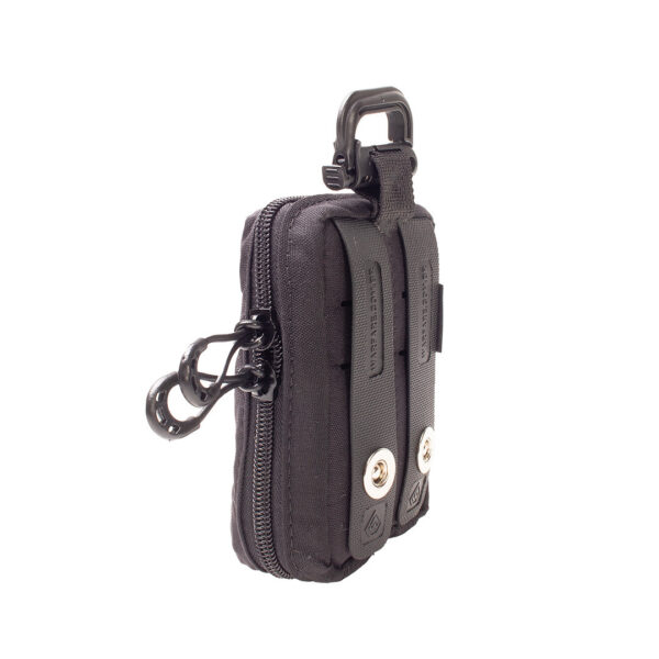 Sua frente em velcro permite fixação de patches personalizados, adicionando um toque de estilo e identificação ao bolso. Já o mosquetão D mesmo na parte superior facilita a fixação em diferentes suportes, como presilhas de calça, alças de mochila ou outros equipamentos, garantindo praticidade e acesso rápido.