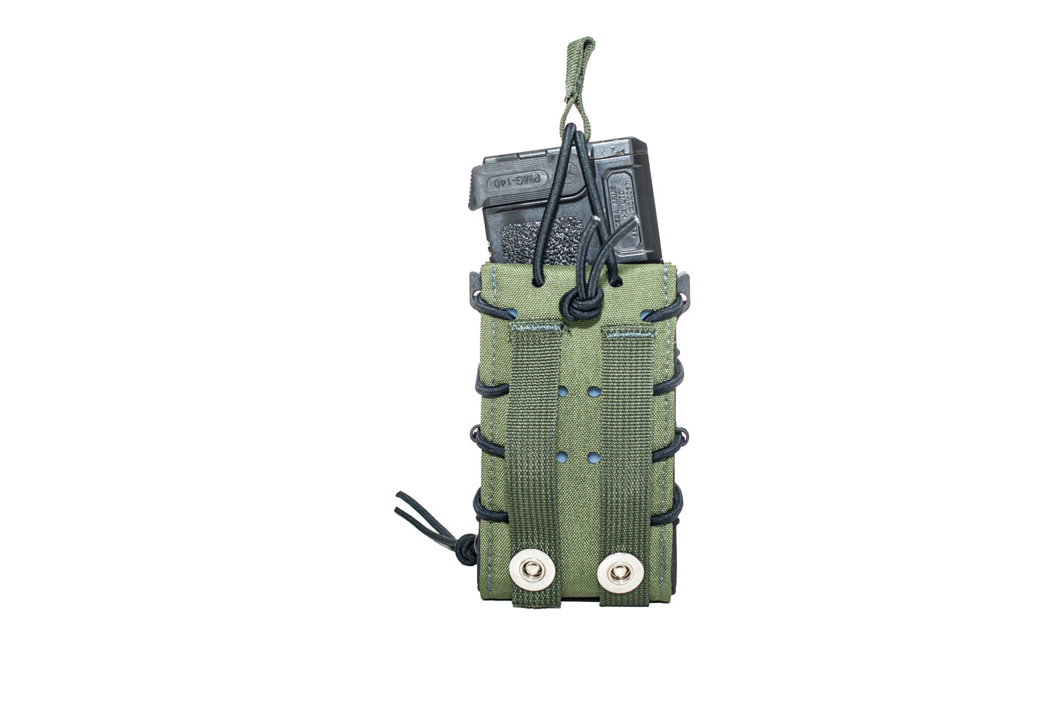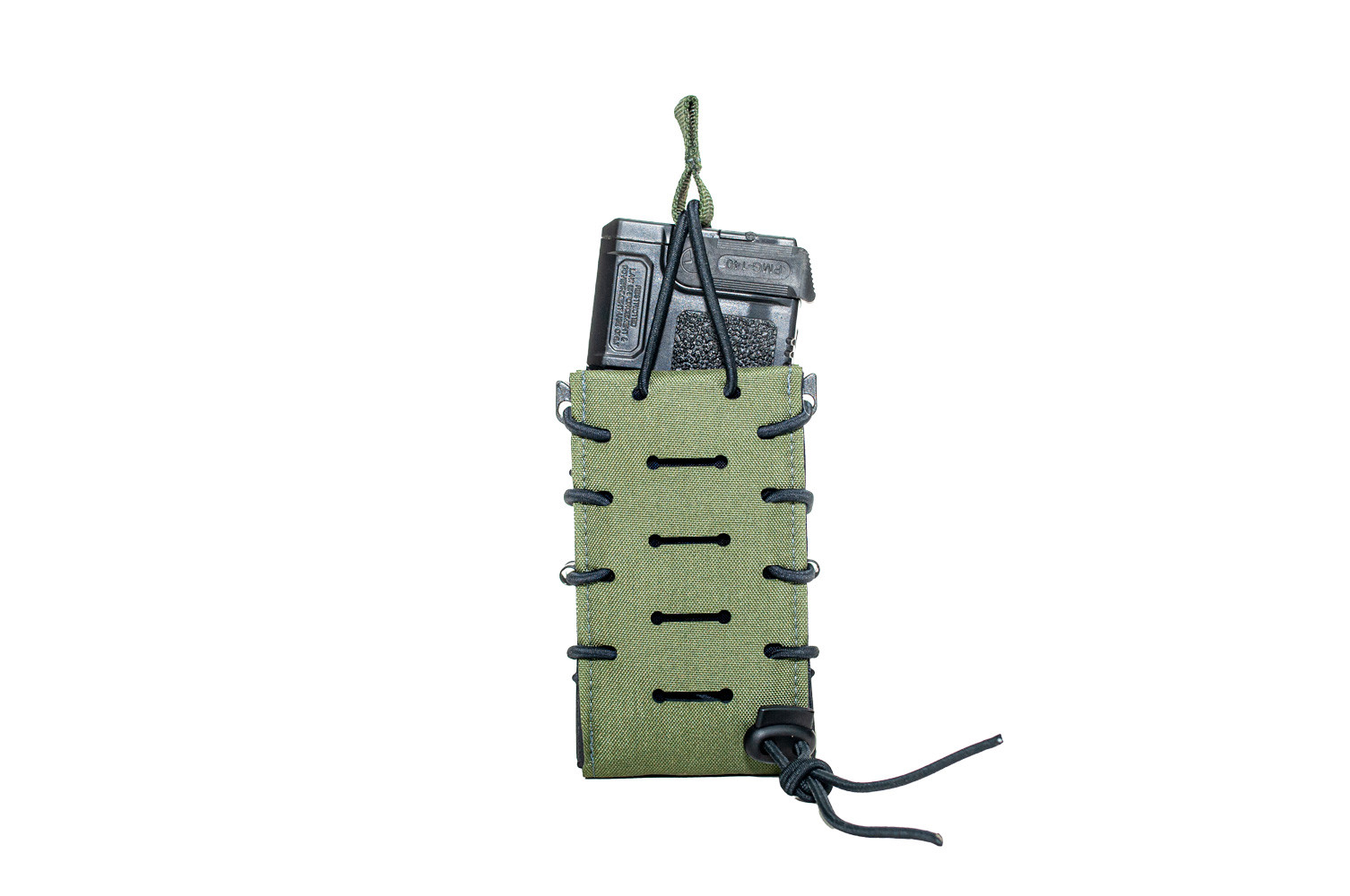 • Compatibilidade com Múltiplos Calibres: Suporta carregadores de fuzis 5.56mm e 7.62mm, ajustando-se automaticamente à espessura do carregador com o uso de elásticos tensores e laterais expansíveis.